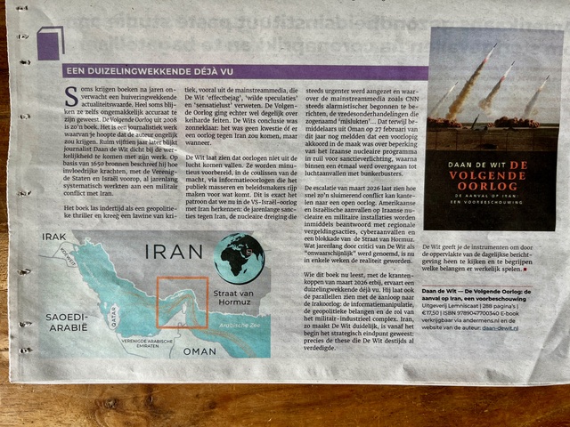 Het boek De volgende oorlog van journalist Daan de Wit biedt twee inzichten. Heel concreet laat het zien hoe er al langere tijd een oorlog tegen Iran wordt voorbereid en in het verlengde daarvan biedt het een blik achter de schermen van de macht achter de macht.